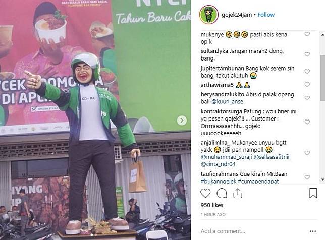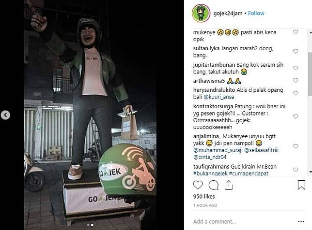 Tak lama setelah diunggah, foto ogoh-ogoh berbentuk pengemudi ojol ini pun mendapat beragam tanggapan dari warganet. Ada yang menebak-nebak, apa yang membuat pengemudi ojol ini menyiratkan wajah seperti itu.