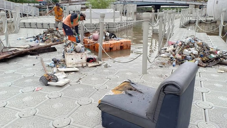 Taman Apung Kali Besar Dipenuhi Sampah Sofa hingga Pintu Rumah